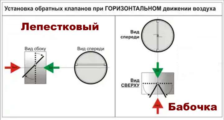 Ce type de vanne peut être utilisé dans les systèmes de ventilation naturelle. Lorsqu'elle est correctement installée, la vanne nécessite un débit d'air minimal pour s'ouvrir - la résistance de la vanne à s'ouvrir est très faible. Selon la conception, ces dispositifs à une feuille sont de deux types. Dans l'un d'eux, l'axe sur lequel le volet est fixé est installé avec un décalage par rapport au milieu du canal d'air, dans l'autre, un contrepoids est installé à l'intérieur ou à l'extérieur.