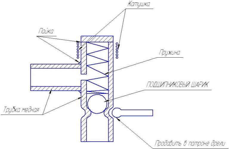 Lorsque vous fabriquez vous-même l'appareil, il est recommandé de régler correctement le ressort. Il ne doit pas dévier lorsque la pression dans le système est faible, et ne pas être trop serré pour ne pas gêner l'écoulement normal du fluide.
