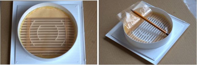 Comment fabriquer soi-même un clapet anti-retour pour la ventilation: instruction sur la construction d'un produit fait maison Le contour du treillis est tracé avec un crayon, un rectangle est découpé dans le couvercle le long des lignes marquées.
