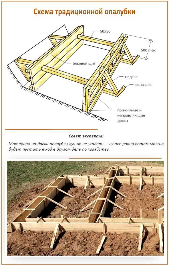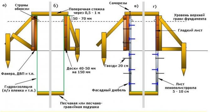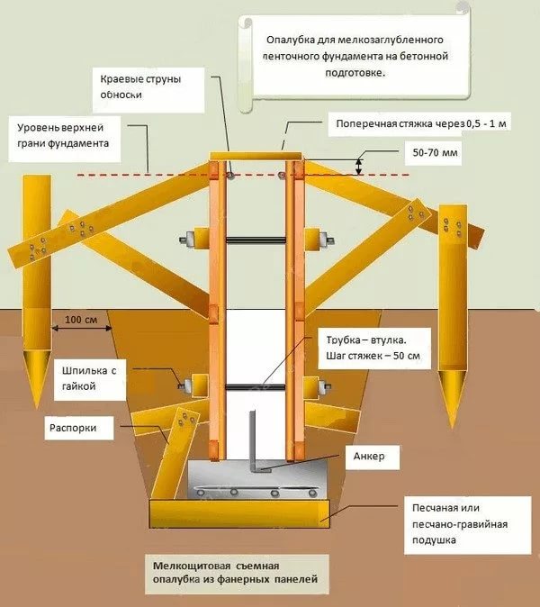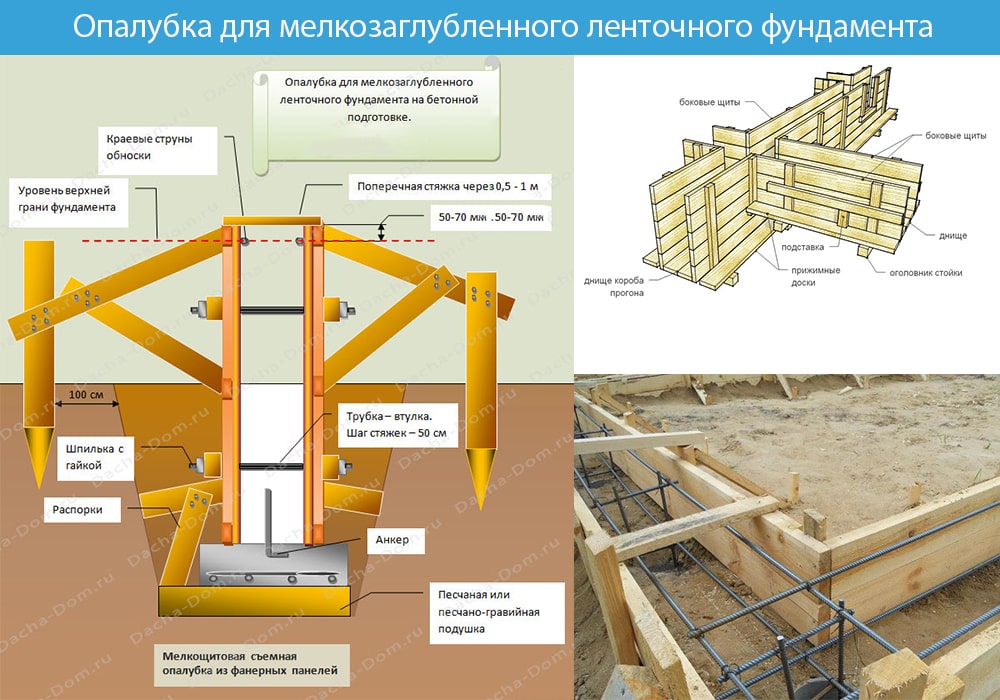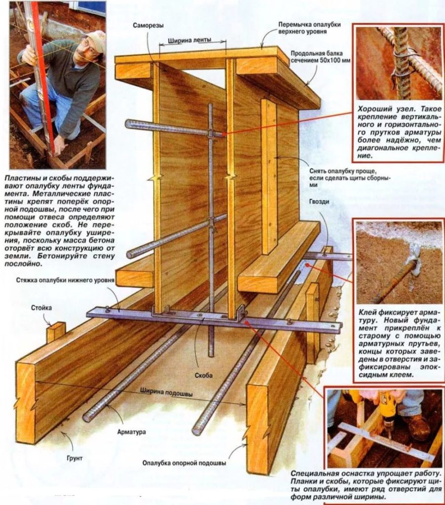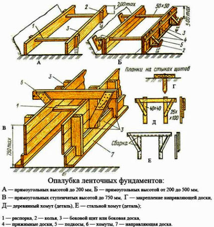 Coffrage à faire soi-même pour une fondation en bande: fixe et amovible, comment et à partir de quoi faire, installer + façons d'économiser