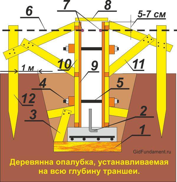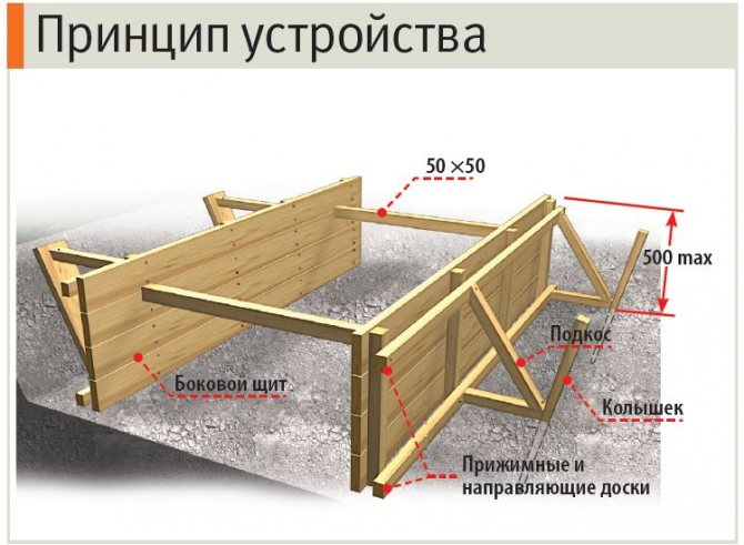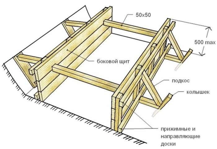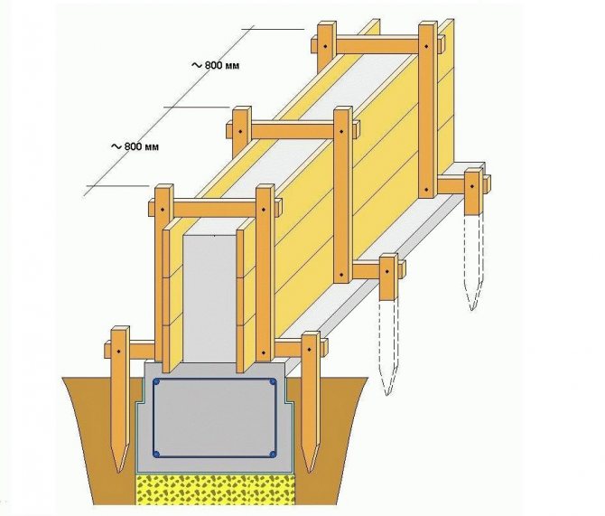 Un coffrage correctement disposé doit être solide, stable, conserver sa forme sous de lourdes charges qui apparaissent lors de l'installation de la fondation.