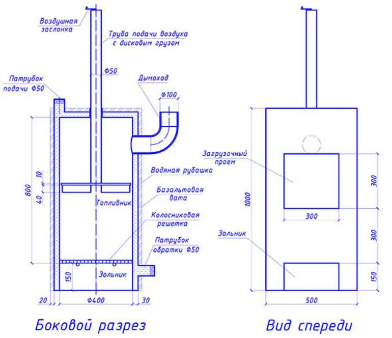 Vous pouvez fabriquer un poêle à ventre long à partir d'un baril en acier ordinaire ou d'une bouteille de gaz usagée. Le principe de fonctionnement est le même partout - la décroissance. Une caractéristique de ces appareils de chauffage sont deux chambres, qui sont divisées en deux parties: pour le carburant et pour la combustion ultérieure du charbon et des gaz. Un piston est prévu dans le dispositif de four, qui :