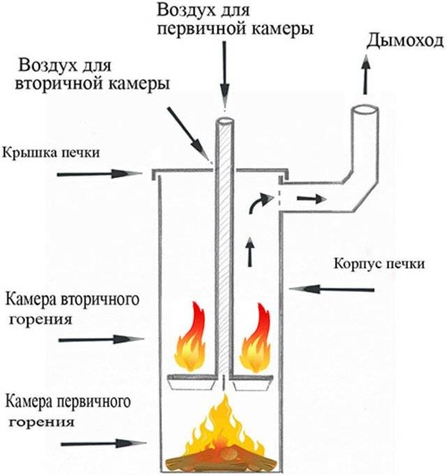 Afin d'éviter un refroidissement rapide des gaz et d'assurer leur combustion complète, il est nécessaire de modifier le processus de combustion du carburant pour qu'il se déroule en mode pyrolyse. Vous pouvez le créer à l'aide d'une température élevée. De plus, même si vous essayez d'utiliser des meubles secs comme combustible, vous ne pourrez pas obtenir l'effet souhaité.