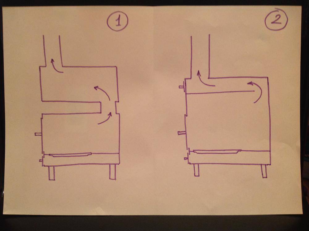 Une autre étape de la modernisation est la disposition d'un certain coude sur la cheminée. Le problème est que la chaleur est éliminée à travers elle. En prolongeant la longueur de la cheminée avec une section horizontale, elle peut être utilisée pour le chauffage de surface. L'inconvénient de cette approche est le dépôt d'une énorme quantité de suie.