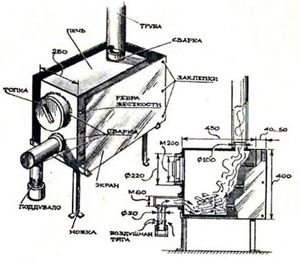 Cette version d'un poêle à ventre fabriqué à la main selon le dessin est la plus efficace. Le poêle à ventre de cette option, comme le modèle précédent, est de forme rectangulaire, mais ses parois sont constituées d'un tube profilé soudé de section rectangulaire. L'air passera entre les tuyaux et chauffera davantage, augmentant ainsi l'efficacité de la fournaise.