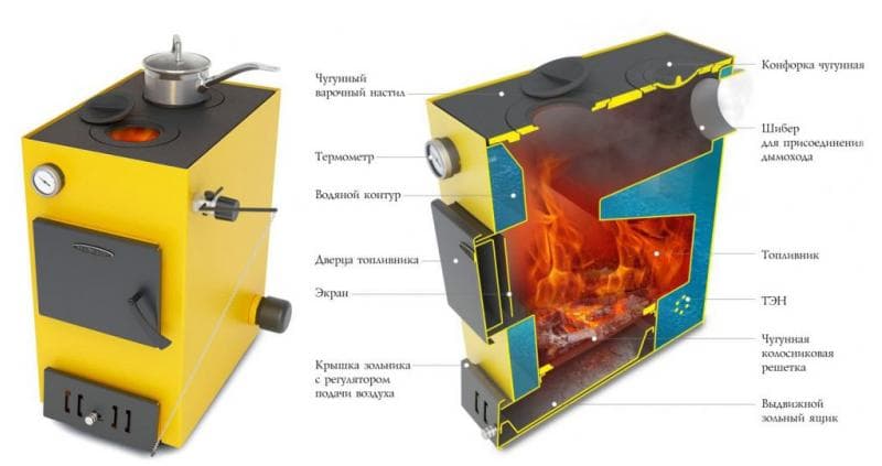 Selon ses principes, un poêle à ventre n'est pratiquement pas différent des modèles d'un appareil spécial à combustible solide. Il s'agit d'une variante spécifique d'un poêle de catégorie foyer très simple. Il existe également des modèles spéciaux équipés de plaques de cuisson et d'appareils de bain spéciaux.