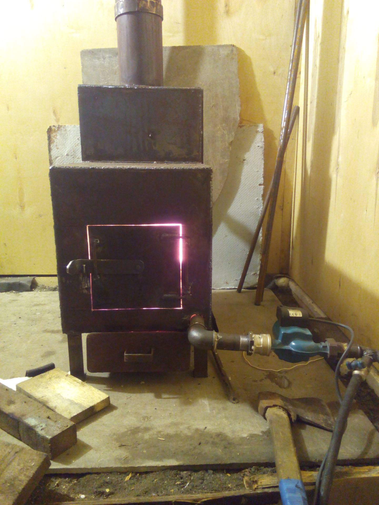 Et pour la plupart des propriétaires de garage, un poêle fabriqué à l'aide de jantes est très populaire.