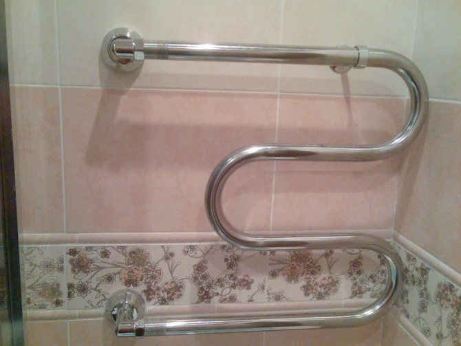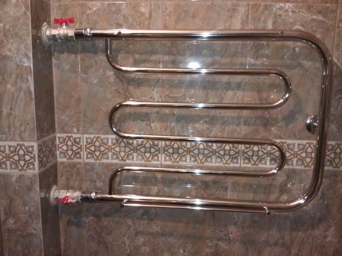 - Porte-serviettes chauffants à eau, qui peuvent être connectés de deux manières - au système de chauffage général de l'appartement ou de la maison, ainsi qu'au simple tuyau par lequel l'eau chaude est fournie.