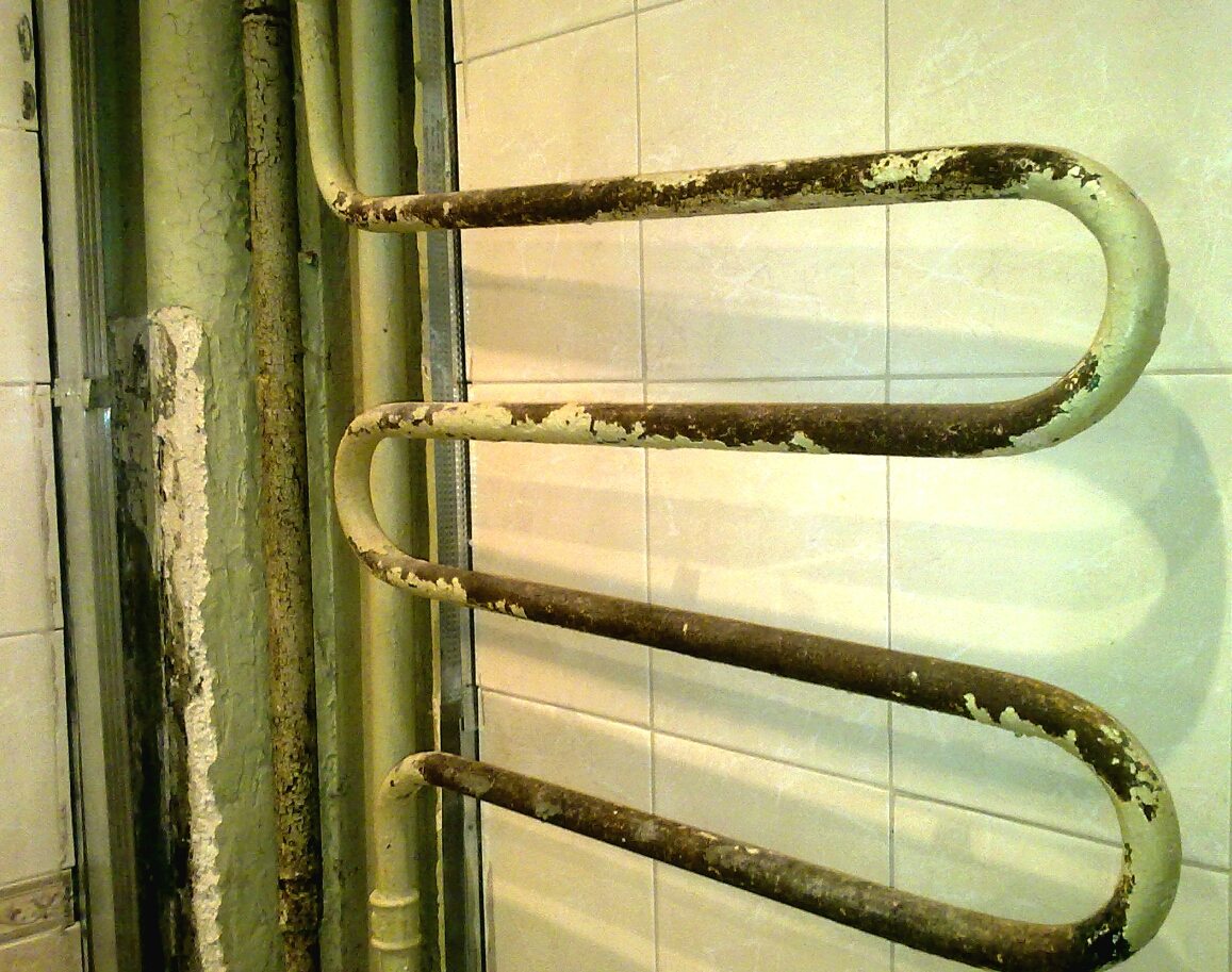 - alimentation en eau chaude : le sèche-serviettes fonctionne toute l'année, cependant, il y a des interruptions lors de l'entretien préventif ; des poches d'air se forment souvent dans les tuyaux, des sels d'eau dure se déposent sur les parois des tuyaux, réduisant le diamètre;