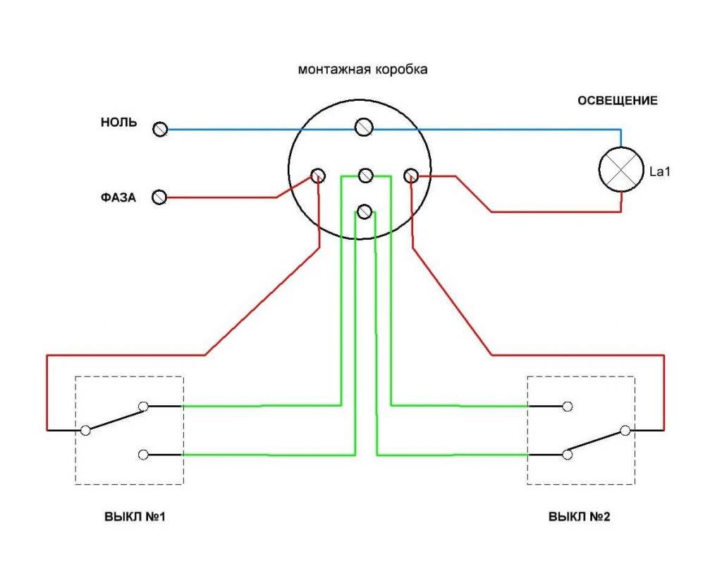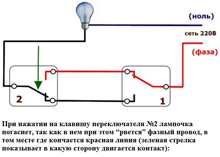 Le contact commun peut être situé n'importe où, il est donc important de le trouver, en se concentrant sur le diagramme ou les lectures de l'instrument. Très souvent, de tels problèmes surviennent lors de l'installation ou du remplacement de commutateurs pass-through de différents fabricants.Nous avons regardé les informations une par une, les avons connectées correctement, et la seconde s'est avérée provenir d'un autre fabricant