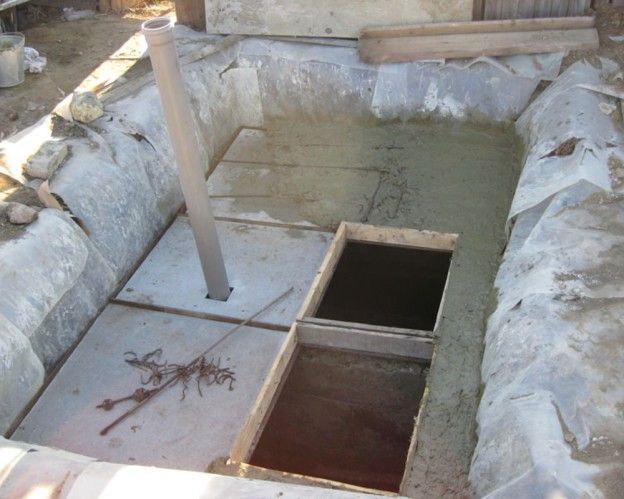 - S'il y a beaucoup d'eau qui entre, il est nécessaire de creuser en plus une fosse de drainage dans laquelle l'eau sortira de la fosse. Une pompe de drainage pour les eaux sales est installée dans la fosse et les eaux souterraines sont constamment pompées.