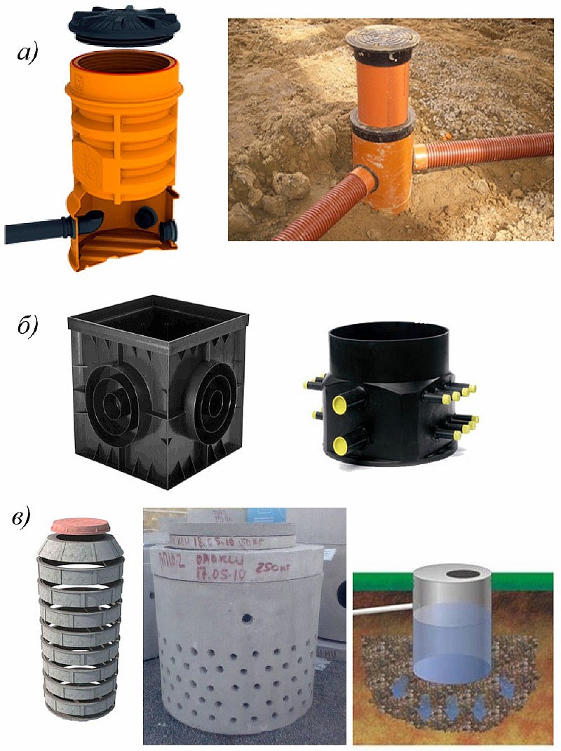 Il existe deux types de structures de puits de filtration qui fonctionnent sur le même principe et sont installées de manière similaire. Leurs différences résident dans le domaine d'application. Les premiers sont utilisés dans le système de drainage et d'orage, les seconds dans les égouts.