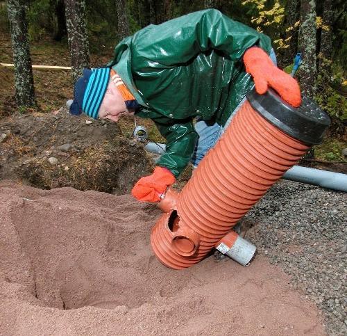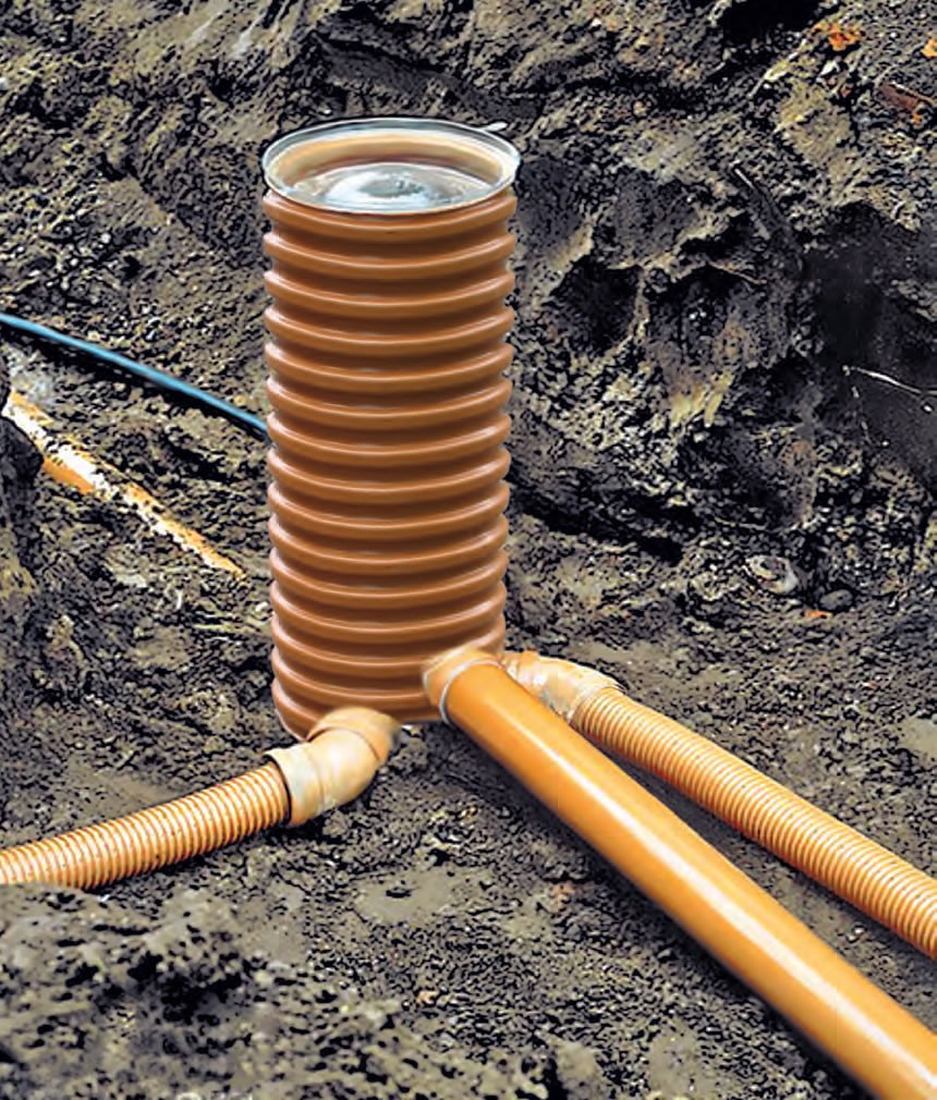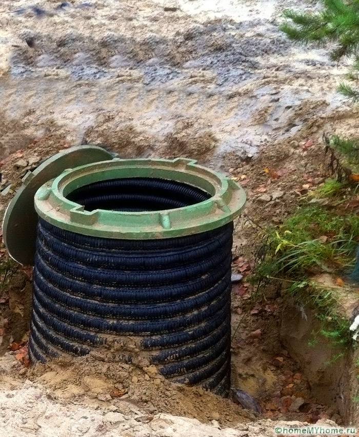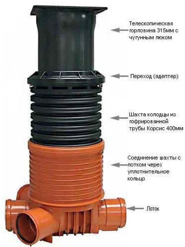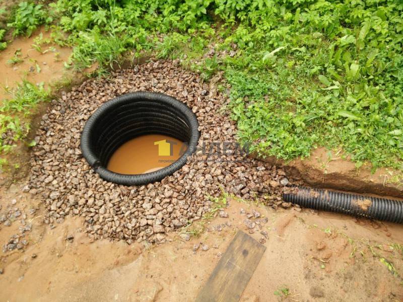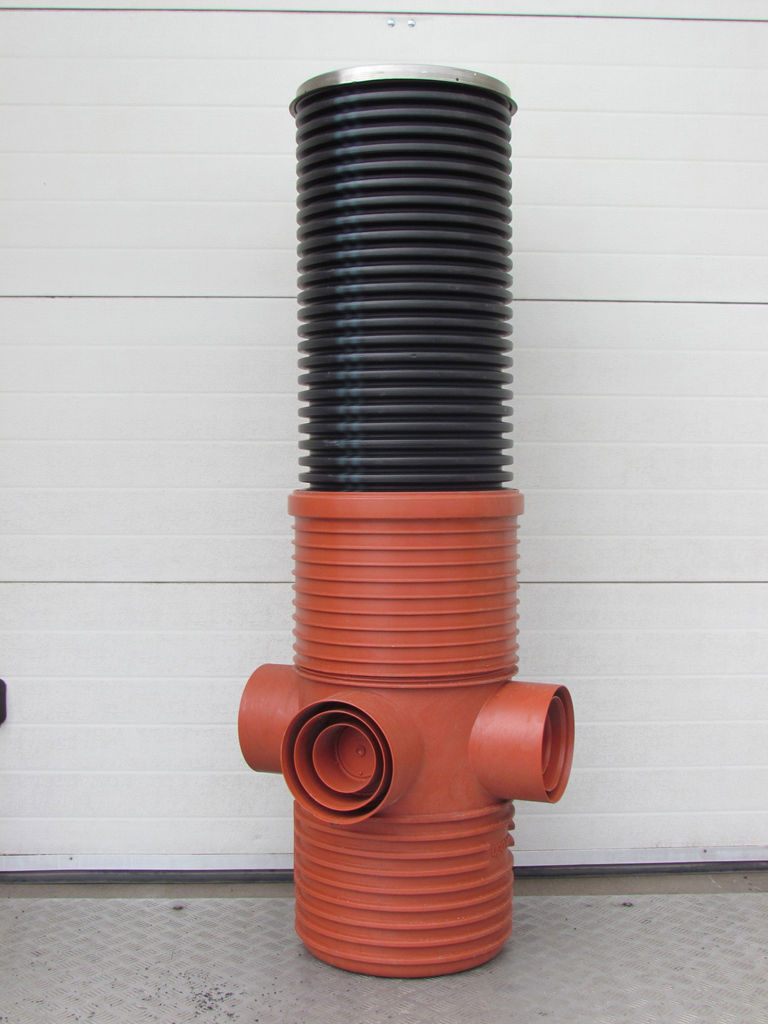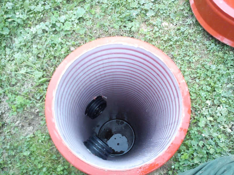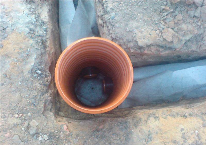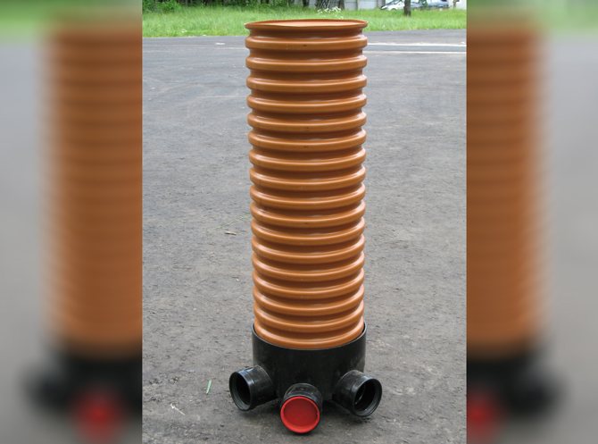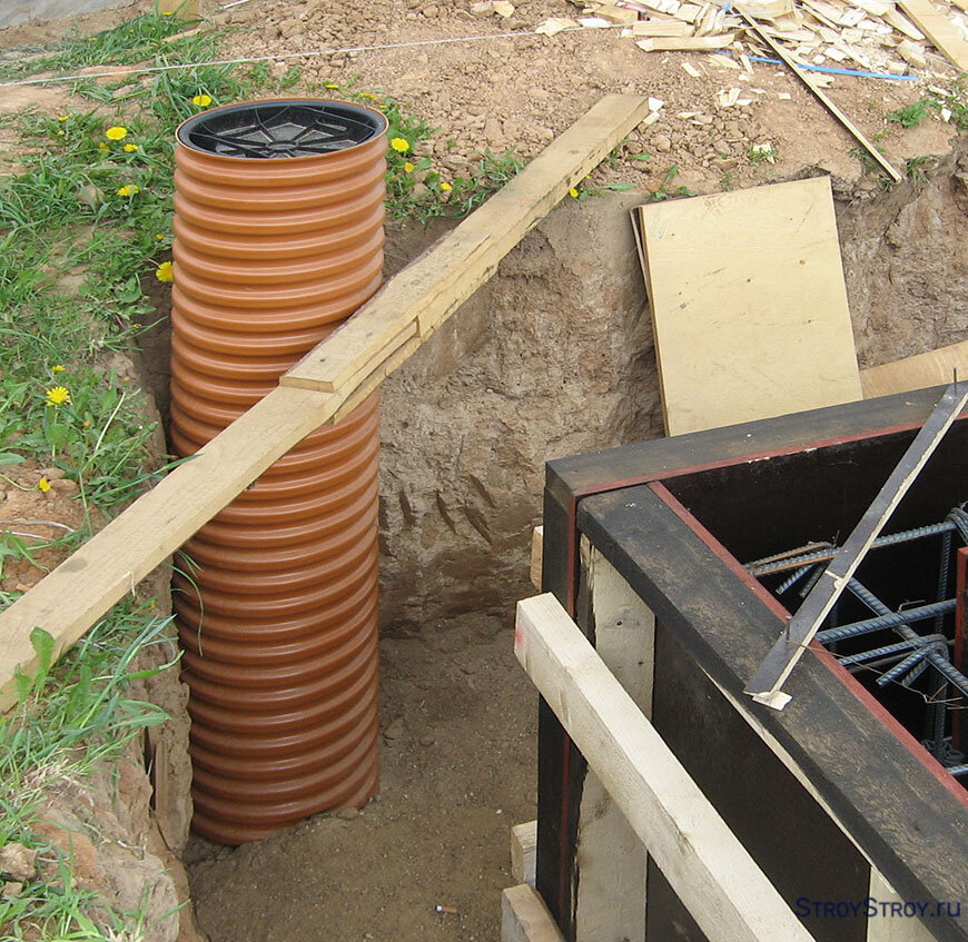 4. Tuyau ondulé: d'un diamètre de 35 à 45 cm - sous un puits d'inspection en plastique sans descendre de personne, d'un diamètre de 1,0 mètre et plus - sous un réservoir dans lequel une personne descendra.