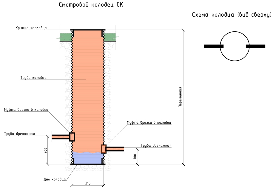 Des diamètres de tuyau similaires ne sont pas utilisés dans les systèmes de drainage individuels. Mais d'autres types de puits peuvent être utilisés avec succès dans les égouts locaux.