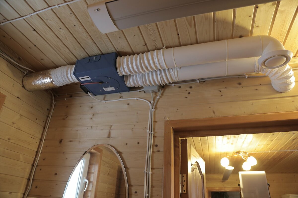 L'air évacué quitte la maison par des bouches d'aération, des gaines de ventilation ou des conduits d'aération. Les conduits de ventilation sont généralement amenés au grenier ou reliés à un puits de ventilation situé au centre de la maison.