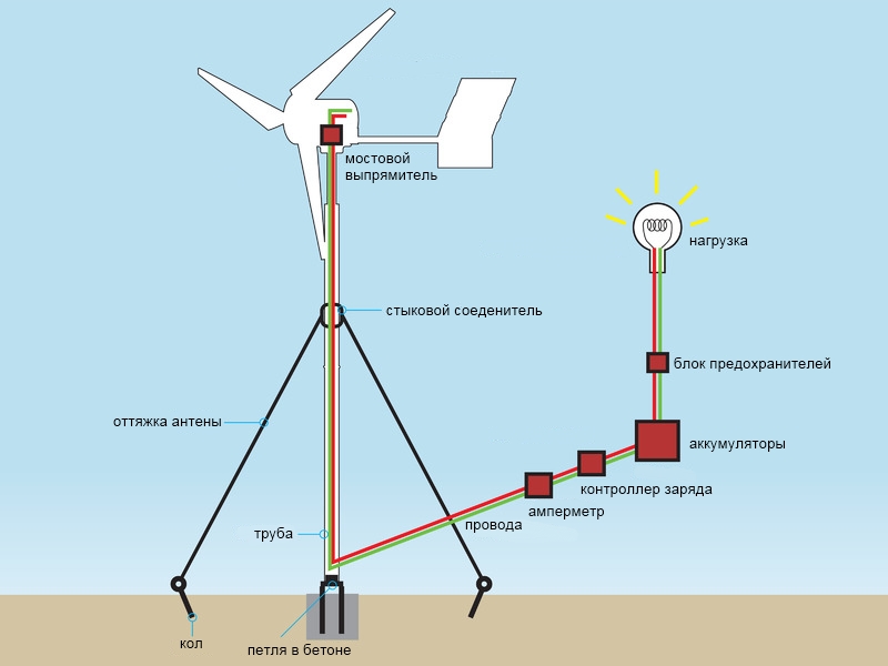 Dans le même temps, il convient de garder à l'esprit que le vent ne souffle pas toujours, par conséquent, de vos propres mains, une éolienne pour la maison doit être équipée d'une batterie avec un régulateur de charge, ainsi que d'un onduleur auquel le appareils sont connectés.