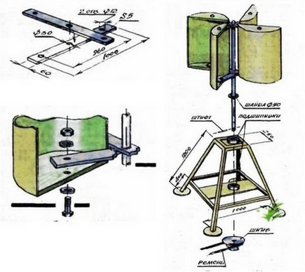 Lorsque la maison est située dans les profondeurs de la colonie et que la cour est de taille compacte et étroitement adjacente aux bâtiments voisins, il ne sera pas facile d'installer de vos propres mains un modèle vertical de moulin à vent. La structure devra être surélevée de 3 à 5 m au-dessus du sol et renforcée afin qu'elle ne tombe pas avec une forte rafale.