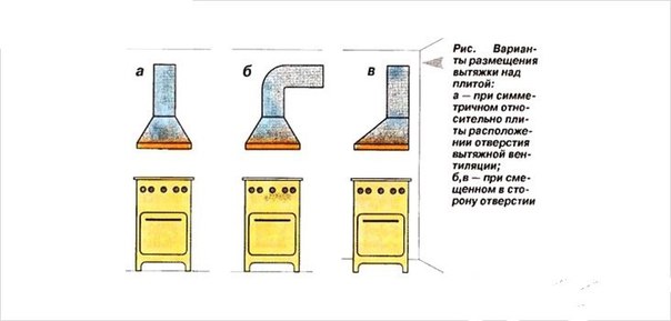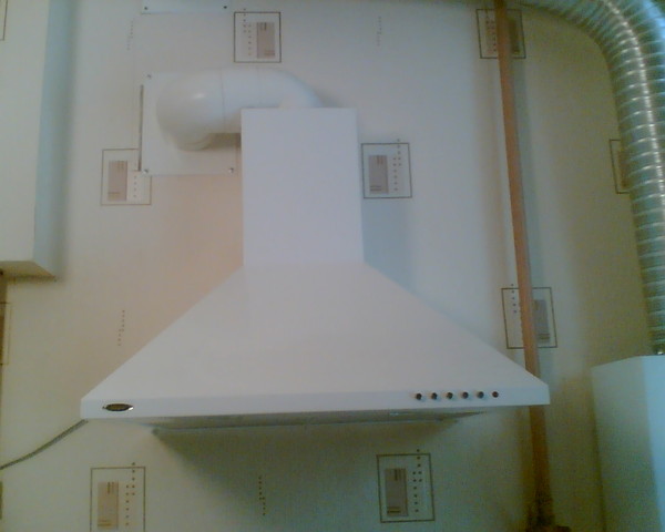 Avant de procéder à l'installation, sélectionnez le bon emplacement pour l'équipement - cuisinière à gaz + hotte. Sur la photo, il y a une cuisinière électrique - les recommandations sont également pertinentes pour les installations à gaz.