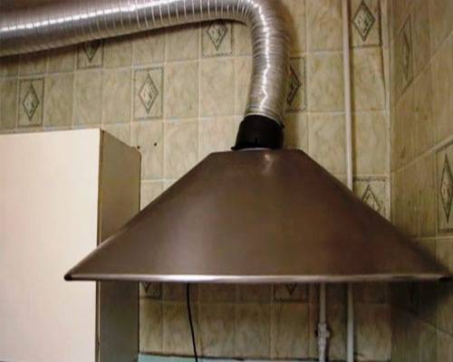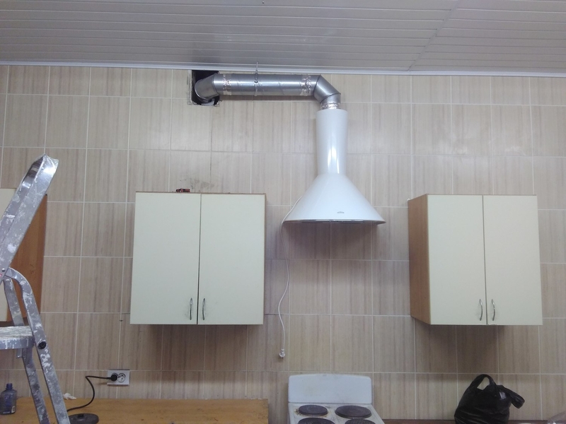 Un exemple d'installation de mécanismes de ventilation de cuisine sur la photo.