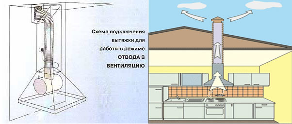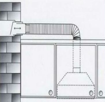 La plupart des propriétaires d'appartements ont recours à cette méthode. C'est vraiment efficace, car la hotte est située directement au-dessus de la table de cuisson et évacue immédiatement les fumées et les odeurs. A partir de la hotte, le conduit de ventilation se déverse directement dans la ventilation générale de la maison. Et ici, vous devez absolument suivre une règle :
