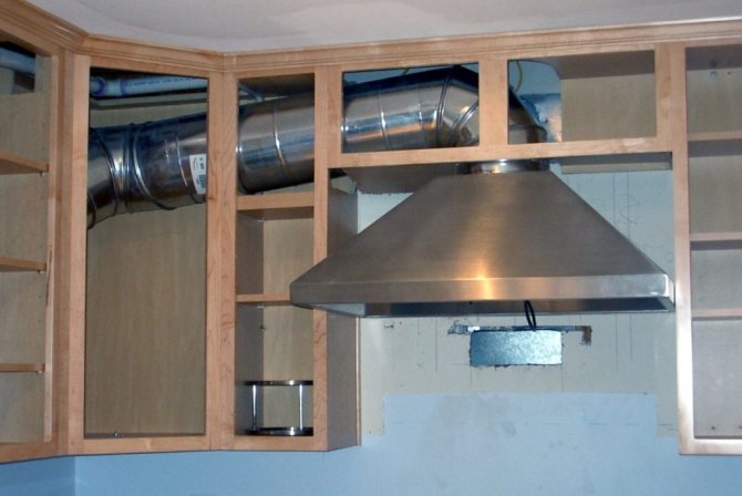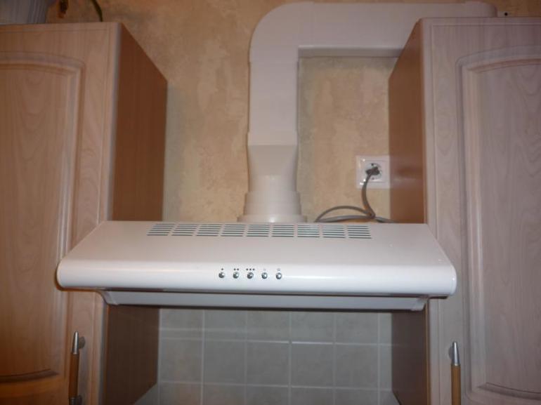 Extérieurement, un tel système n'a pas l'air très attrayant et il devra être masqué d'une manière ou d'une autre. Mais c'est le seul moyen de raccorder la hotte à la seule sortie de ventilation existante et de ne pas réduire les échanges d'air.
