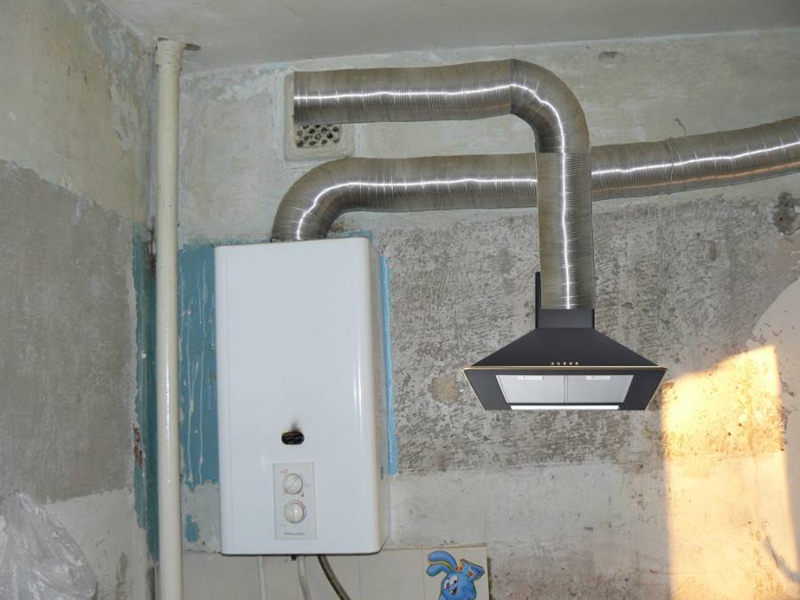 Le plus souvent, le conduit de la hotte de la cuisine est relié à un évent par lequel passe la ventilation naturelle (due au tirage). C'est faux, car dans ce cas, la majeure partie de la grille est fermée par un conduit d'air, et l'échange d'air à travers les trous disponibles restants sera clairement insuffisant.