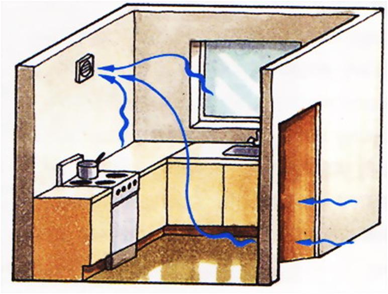 Habituellement, les ventilateurs axiaux sont utilisés pour organiser correctement la ventilation de la cuisine.