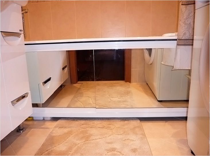 De plus, l'acrylique n'est pas considéré comme un matériau à résistance accrue, de sorte que les parois ou les côtés de la baignoire peuvent réagir de la manière la plus inattendue aux réparations, aux fissures ou aux bris. Les écrans avec des portes qui permettent un accès libre à l'espace sous la salle de bain se distinguent par une grande fonctionnalité.