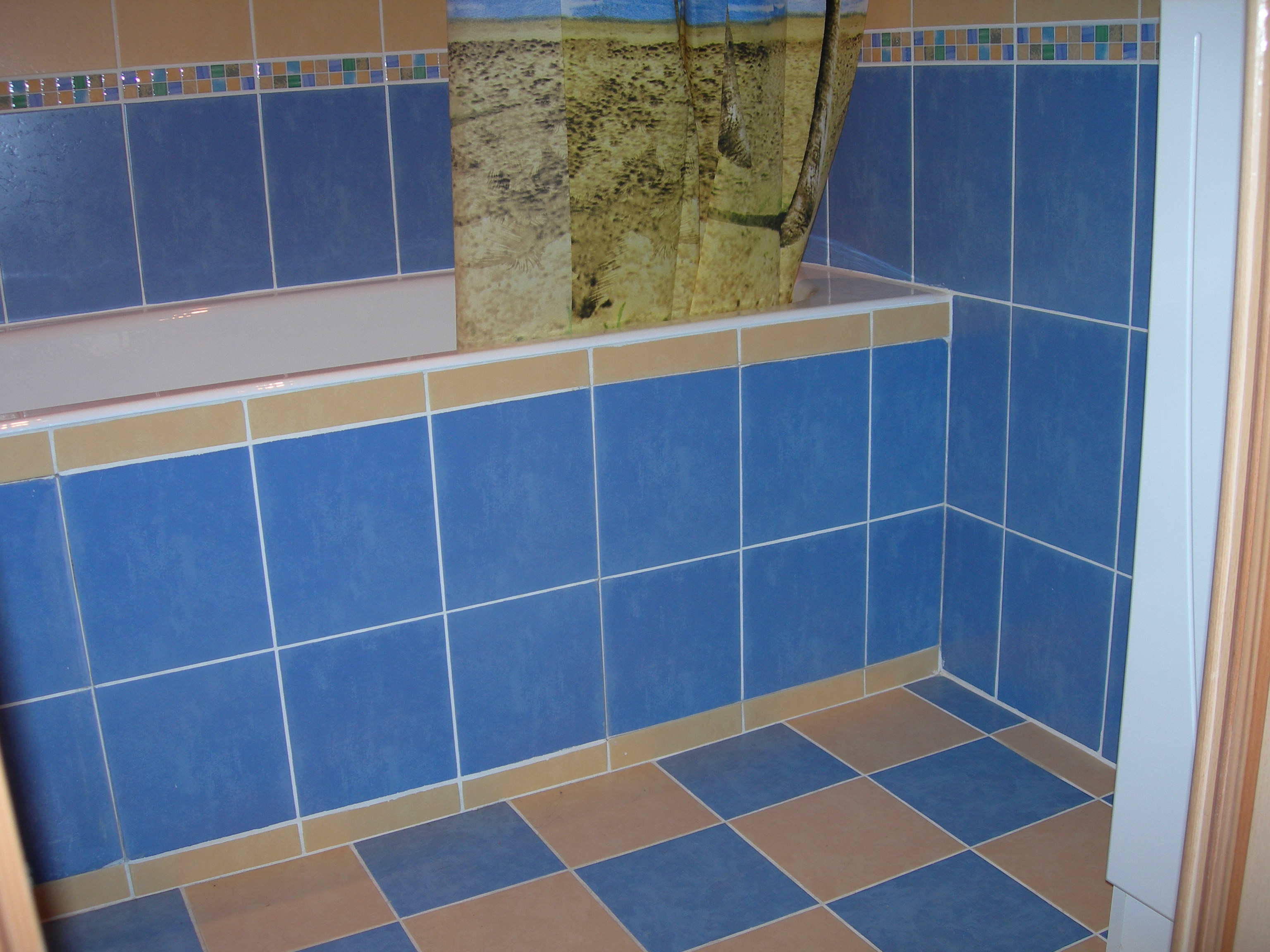 Après le carrelage, scellez le joint entre le carreau de l'écran et le mur et le sol de la baignoire, non pas avec du coulis, mais avec un scellant (blanc ou transparent). Le coulis ne tiendra pas.