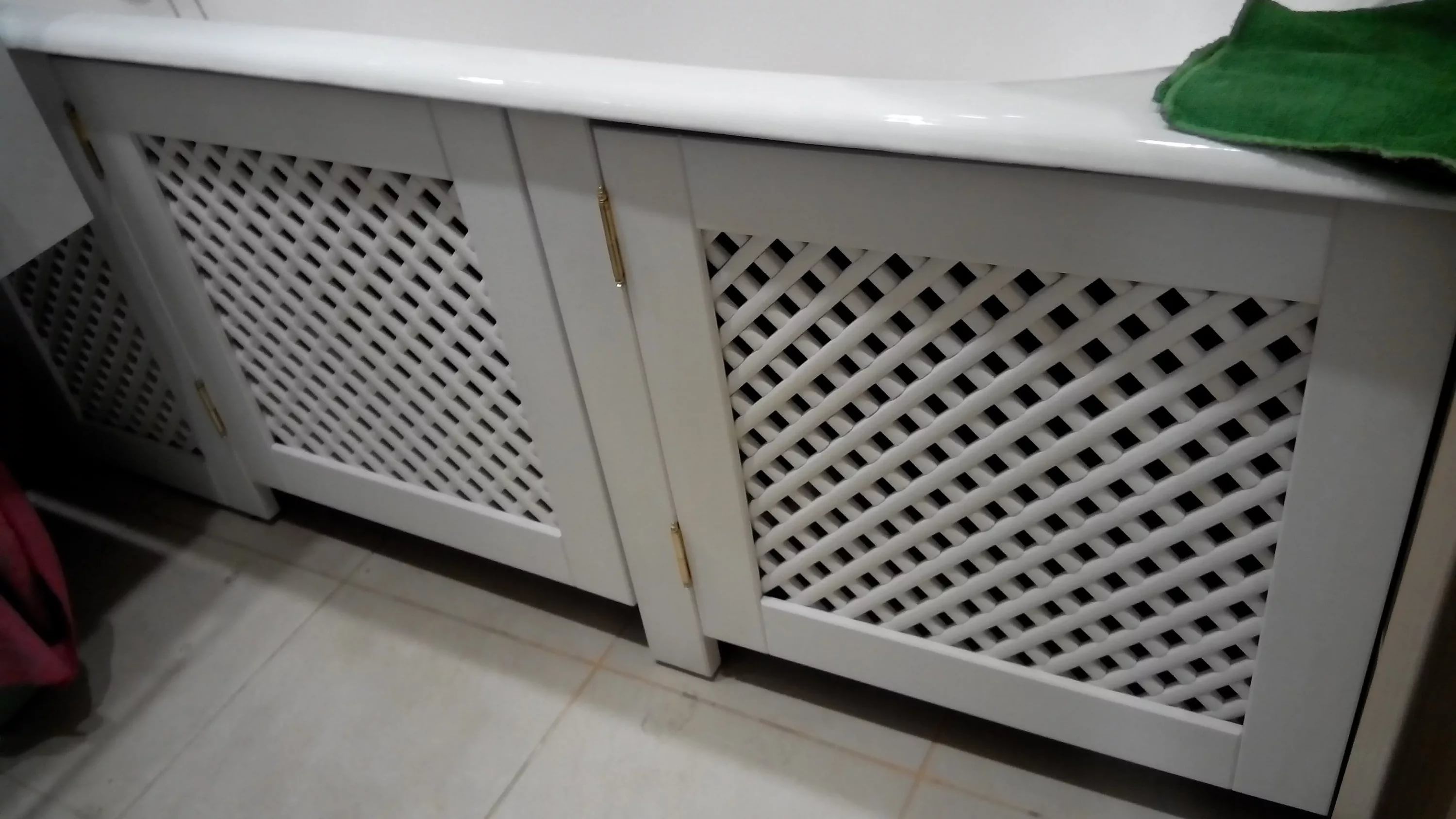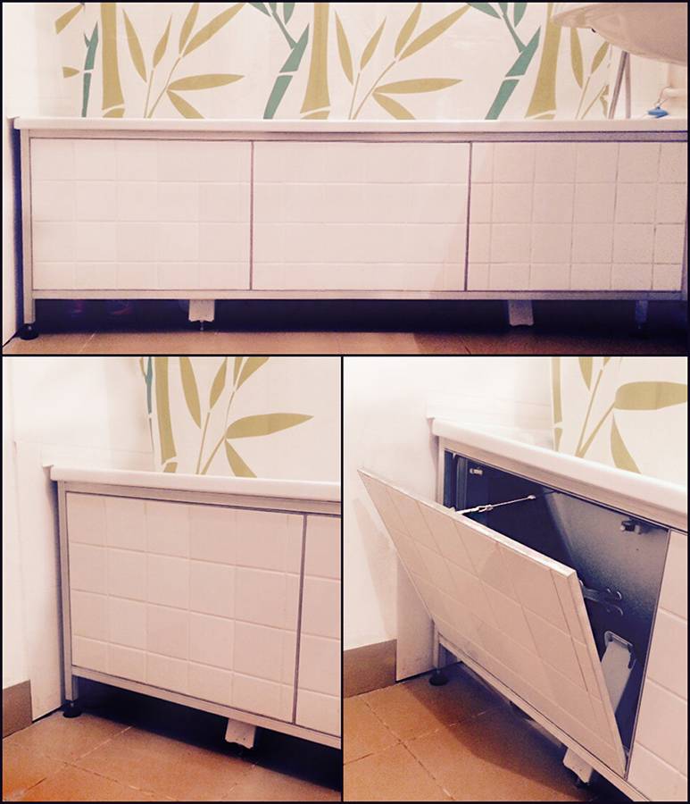 Étant donné que cet écran sera fixe, vous devez veiller à la disponibilité d'une trappe technique pour la révision des communications sous la salle de bain. Vous pouvez également le fabriquer vous-même, mais il est beaucoup plus facile d'acheter du prêt à l'emploi, car le coût de ces produits est très faible. Cela vous fera économiser à la fois l'effort et le temps de faire l'écran. En vente, en plus des habituelles, il existe des trappes pour les tuiles qui, après avoir fait face, ne se détachent pas du tout sur le fond de l'écran.