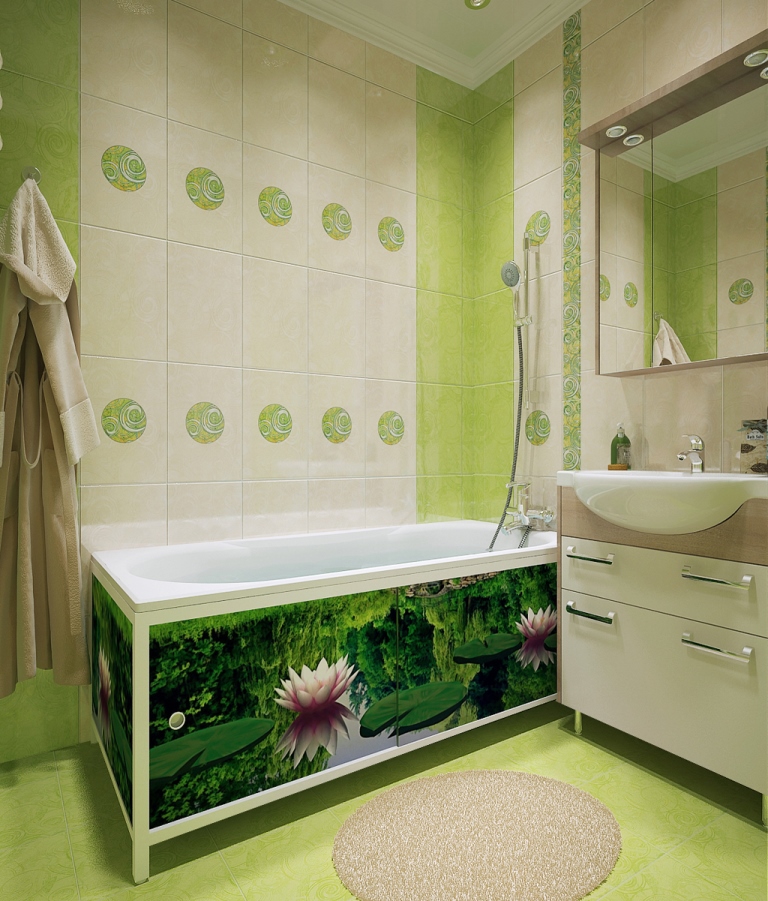 Les fabricants modernes offrent aux clients le service d'imprimer n'importe quelle image sur un écran en plastique, qui décorera la salle de bain dans n'importe quel style.