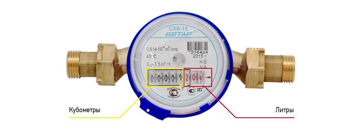 Compteurs d'eau avec échelle à rouleaux: Beregun, Taipit, Valtec, Alekseevsky, Itelma, Norma, Meter, Economy, Okhta et autres.
