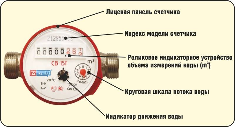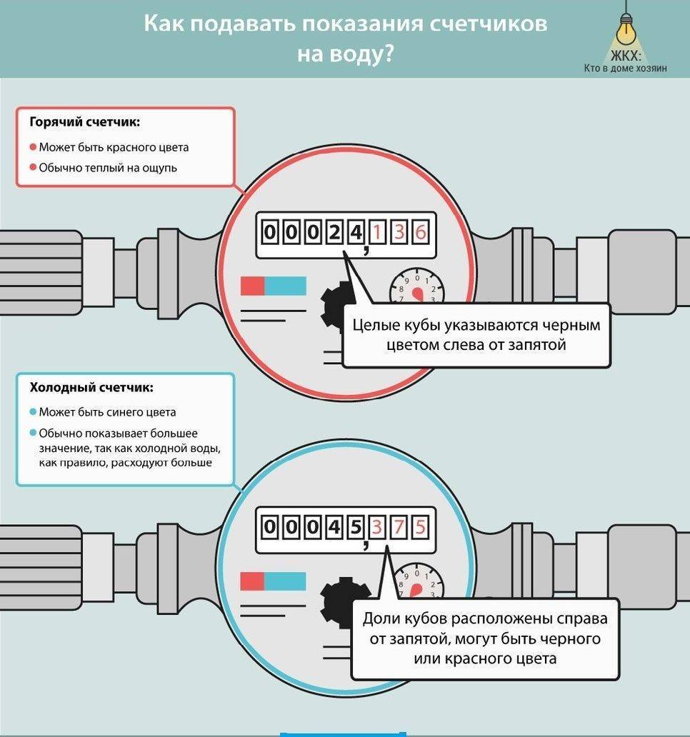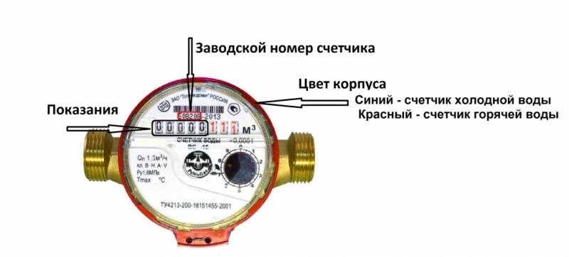 2. La couleur du sceau d'usine (cadre) ou des lignes sur le boîtier. Les compteurs d'eau chaude sont rouges, les compteurs d'eau froide sont bleus. Cette caractéristique vous permet de déterminer rapidement et avec précision le but de l'appareil.
