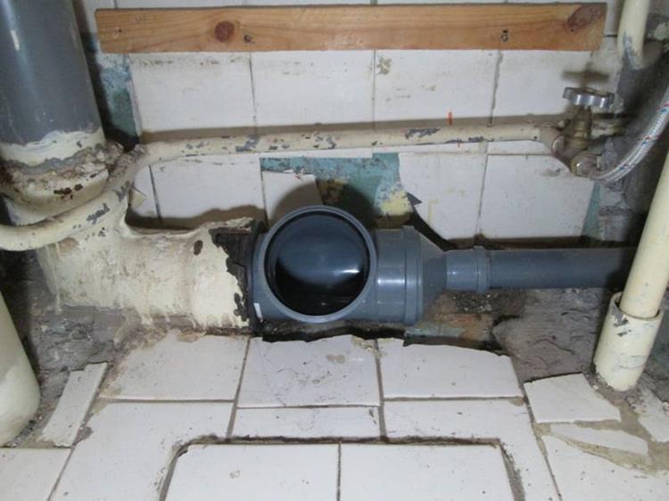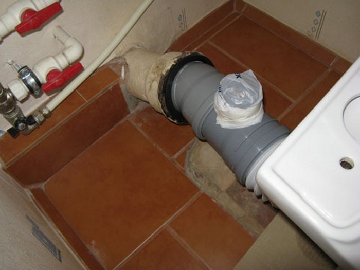 Avec un marteau, vous pouvez détruire le tuyau jusqu'à la croix, inséré dans la colonne montante. Ici, c'est un peu différent et rempli de gris beaucoup plus.
