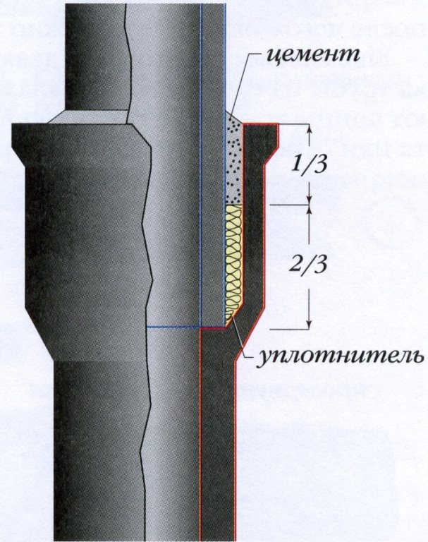 Des tuyaux similaires sont également équipés de douilles, ils sont donc simplement insérés les uns dans les autres. La jonction s'avère lâche et les lacunes doivent être éliminées à l'aide d'un câble ordinaire. Après cela, vous devez utiliser n'importe quel agent imperméabilisant: mastic silicone, mastic ou ciment.