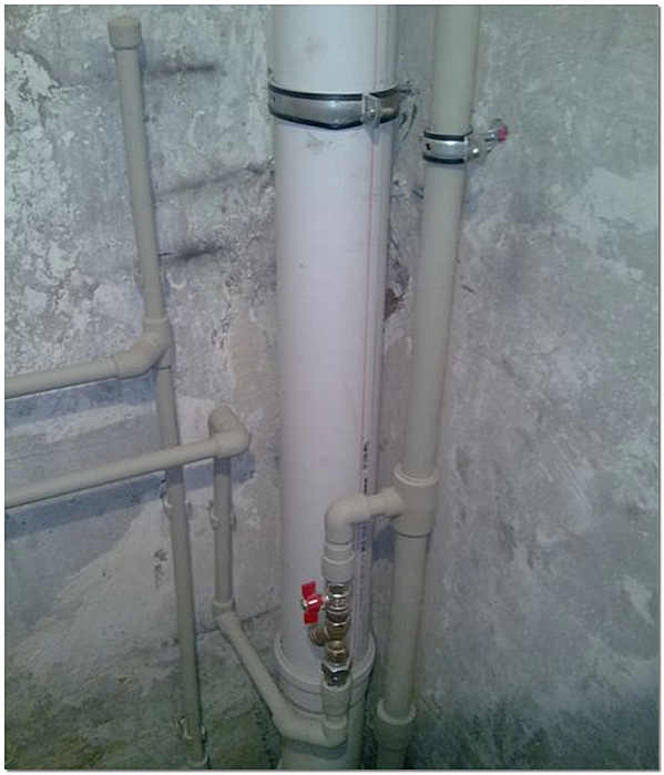 La colonne montante est l'élément principal du réseau d'égouts interne. La tâche principale de la colonne montante est l'admission des eaux usées des sorties au sol et leur dérivation vers un collecteur horizontal.