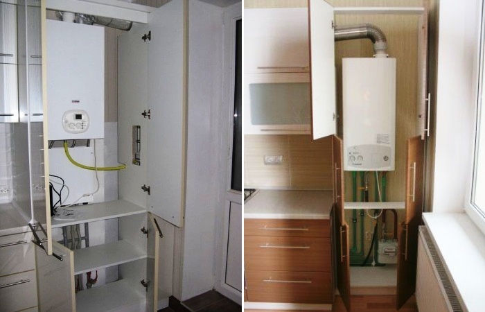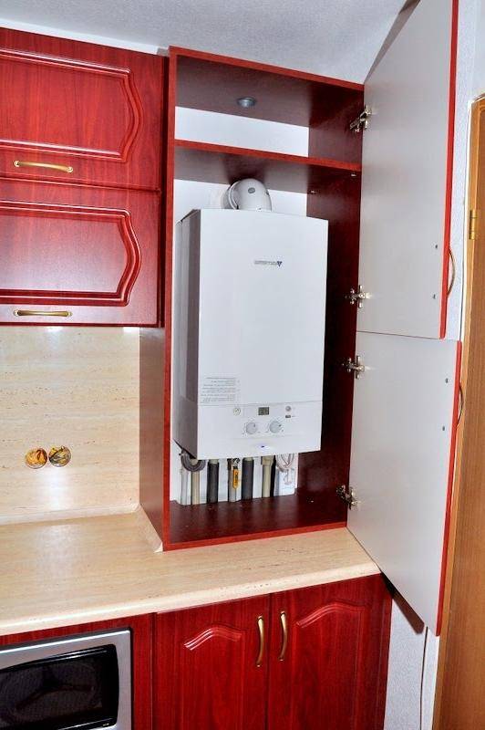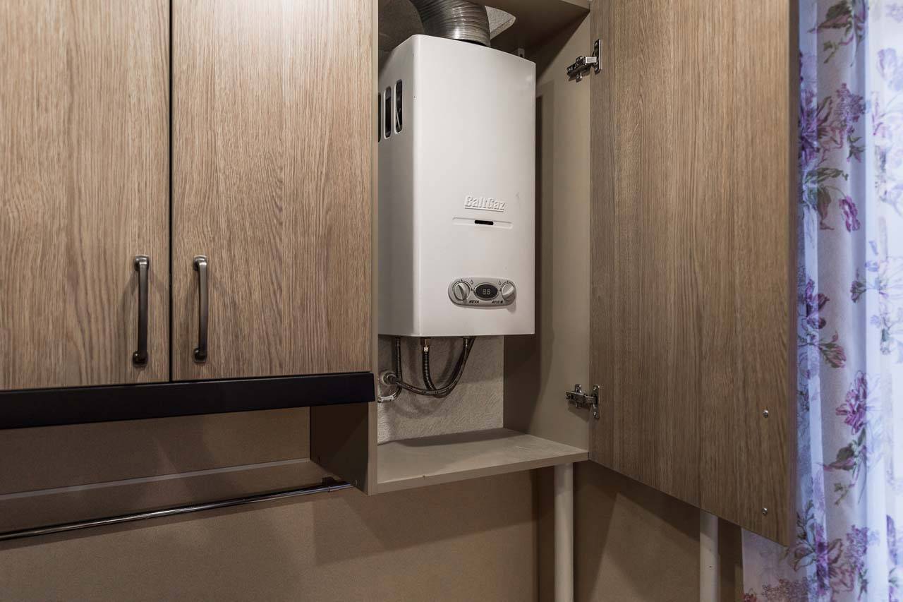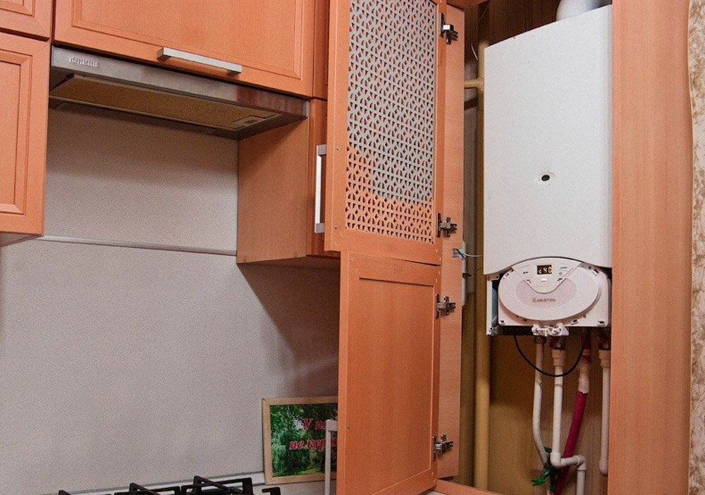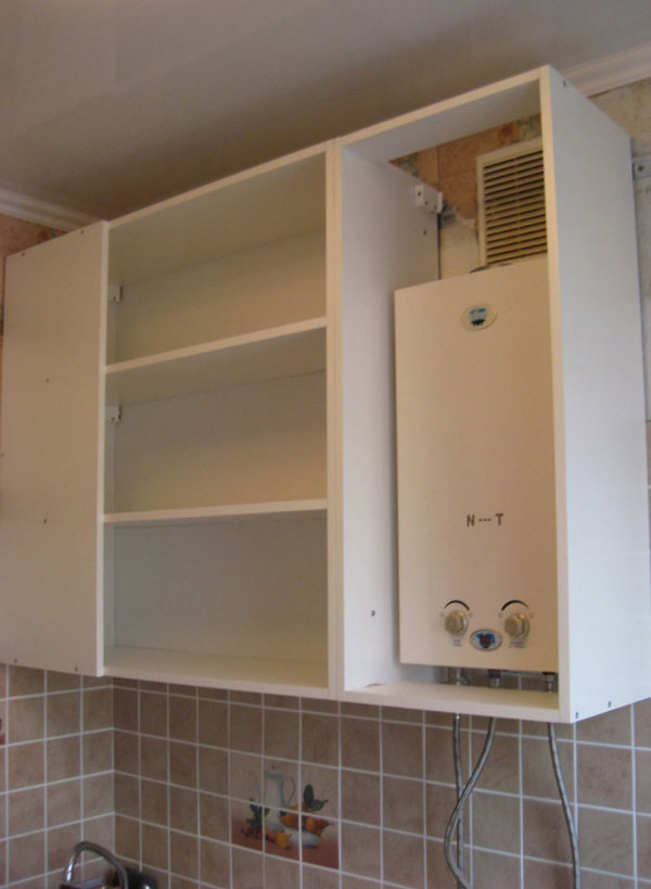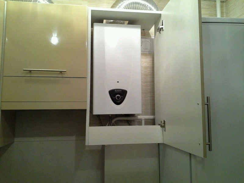 Si la vue dégagée sur le geyser dans la cuisine ne vous convient pas, elle peut être déguisée, par exemple, dans un placard.