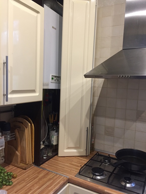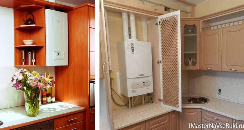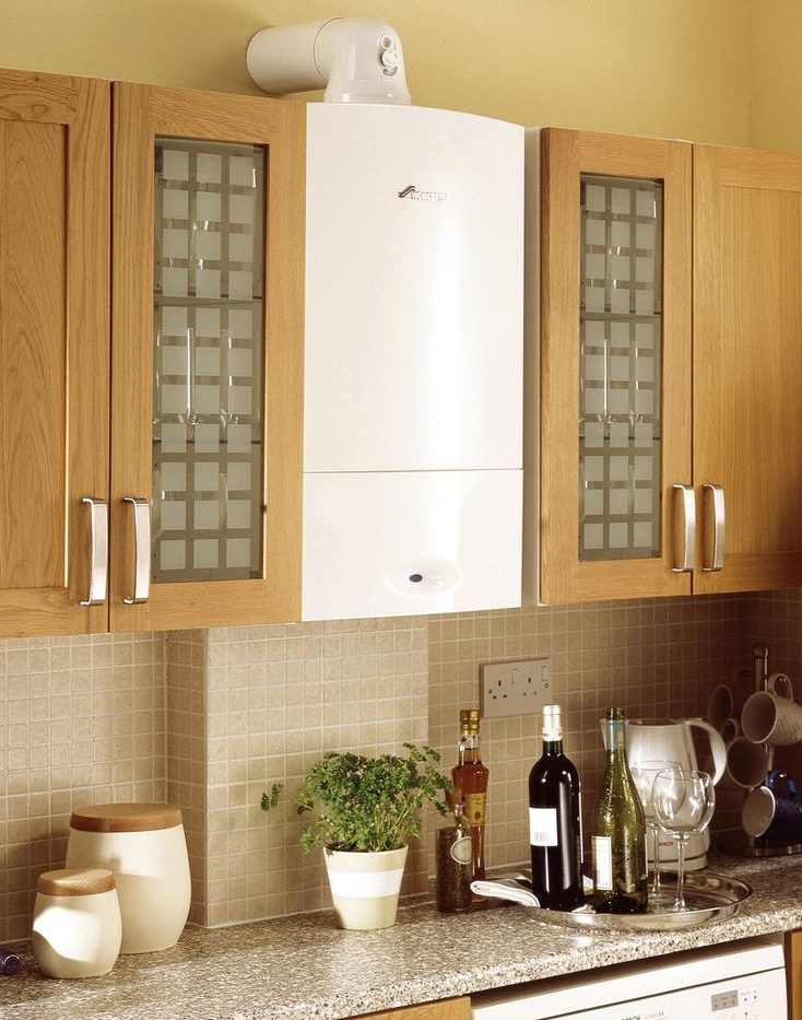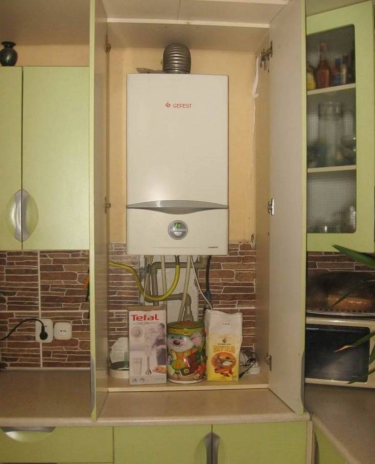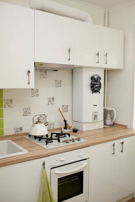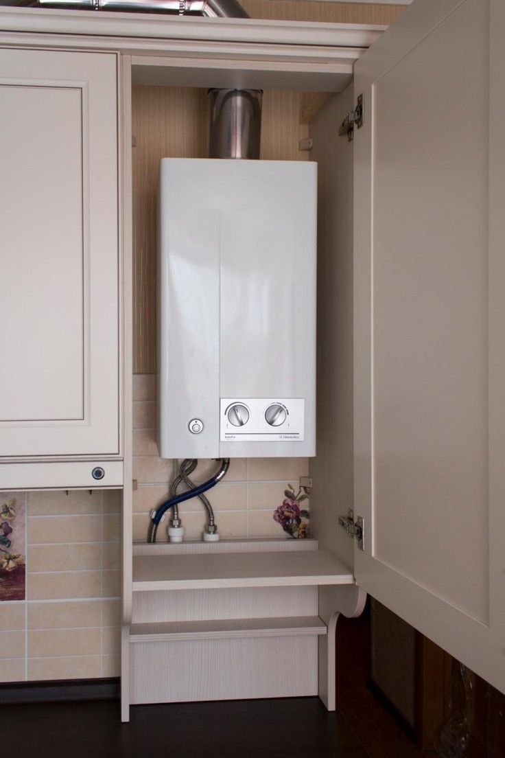 Si la vue dégagée sur le geyser dans la cuisine ne vous convient pas, elle peut être déguisée, par exemple, dans un placard.