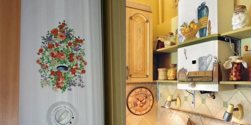 Peinture. Alors, comment fermer le geyser dans la cuisine ? Si vous maîtrisez bien le pinceau, la peinture est une option.