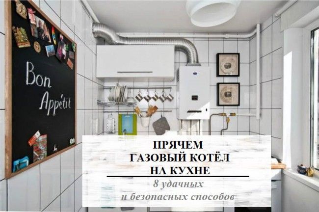 Les deux manières de se cacher, qui sont présentées ci-dessus, vous permettent de masquer et de protéger autant que possible la chaudière à gaz de l'espace environnant général. Ainsi, il reste caché à la vue, sans violer la conception uniforme de la cuisine.