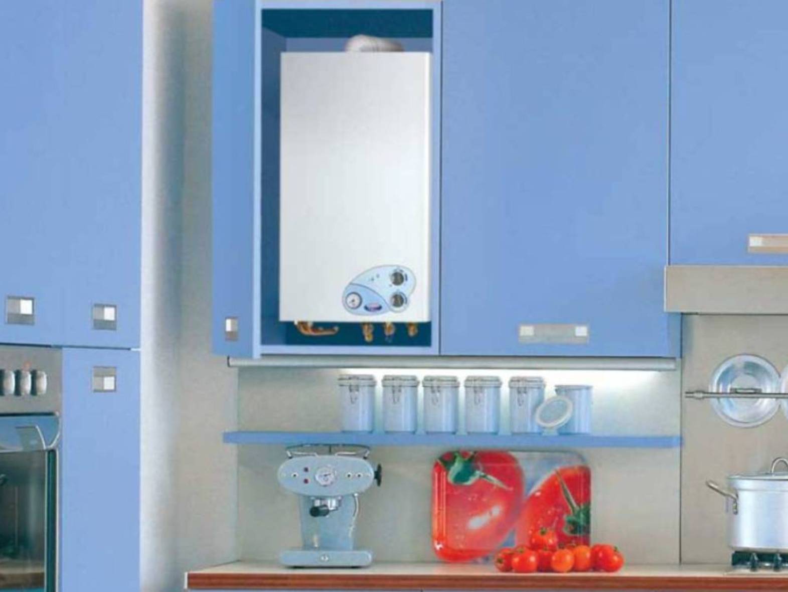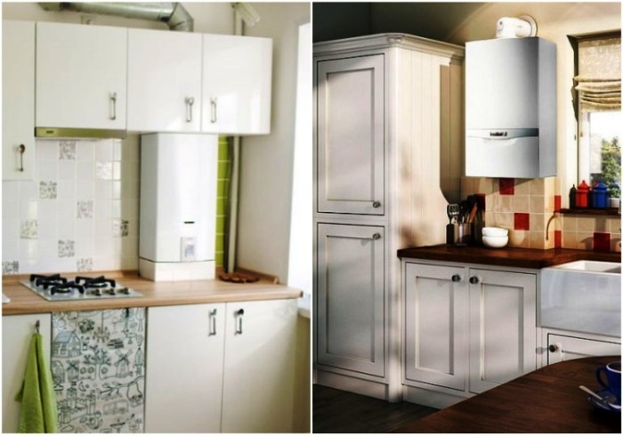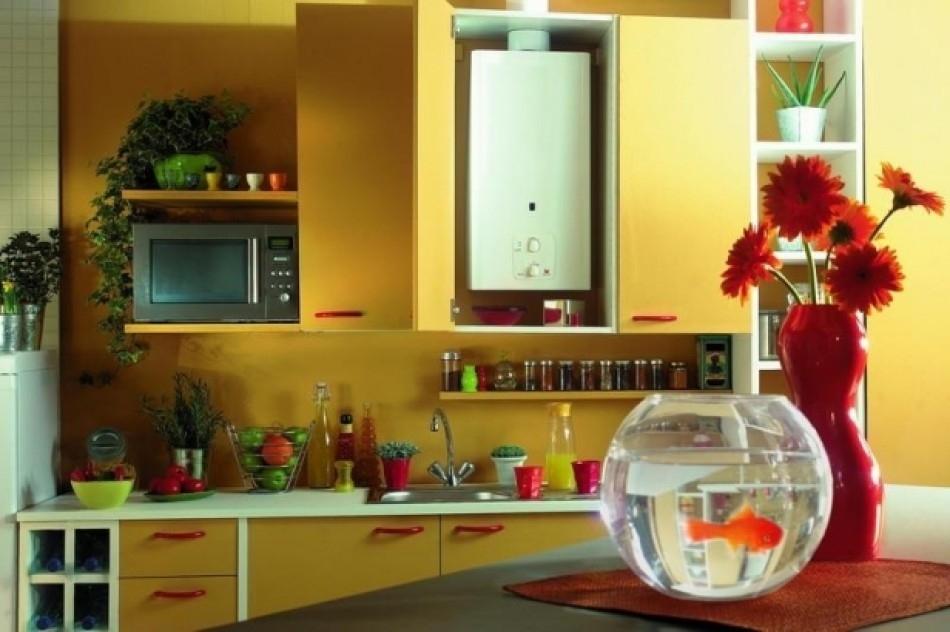 De nombreux acheteurs, choisissant une chaudière à gaz, sont confrontés au problème de savoir comment cacher l'appareil afin qu'il ne gâche pas l'intérieur de la cuisine, mais s'y fonde harmonieusement.