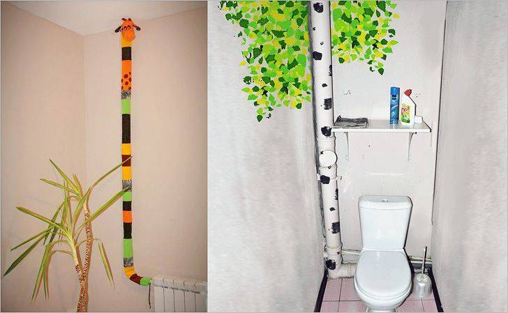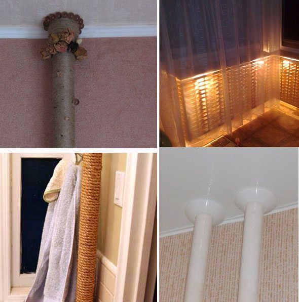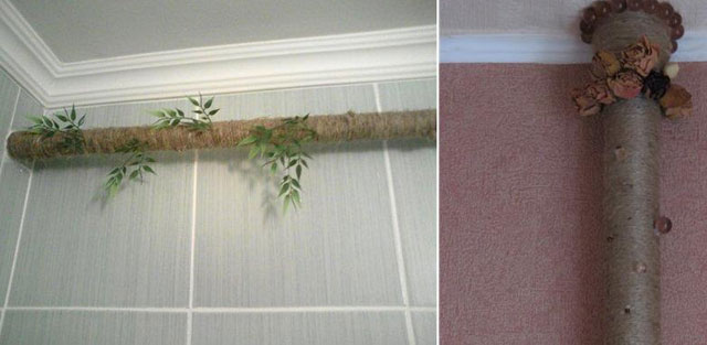 Après avoir décidé de décorer les tuyaux de votre maison de manière originale et de montrer votre imagination, vous pouvez obtenir un élément original de l'intérieur et obtenir un effet incroyable dans la pièce.