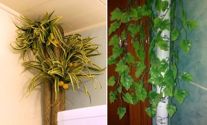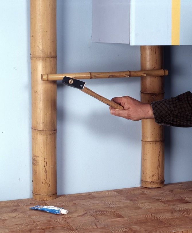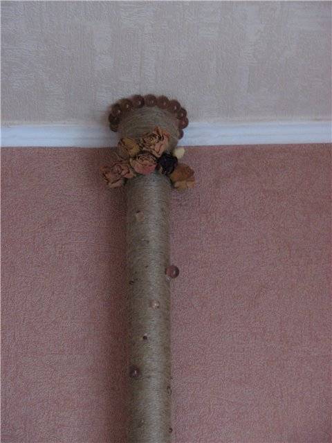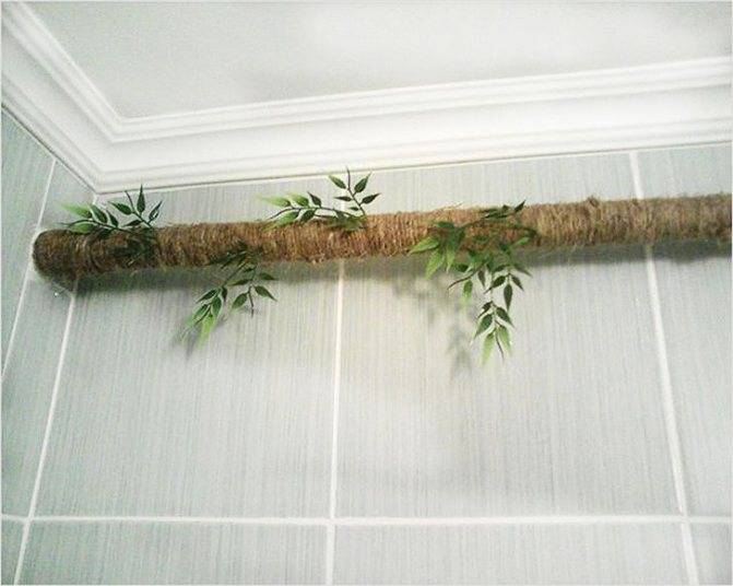 • Et si au lieu de bambou (ou avec lui) des fleurs artificielles sont utilisées, une telle décoration ne passera pas inaperçue auprès de vos invités, cachant complètement sa «base» - le tuyau de chauffage.