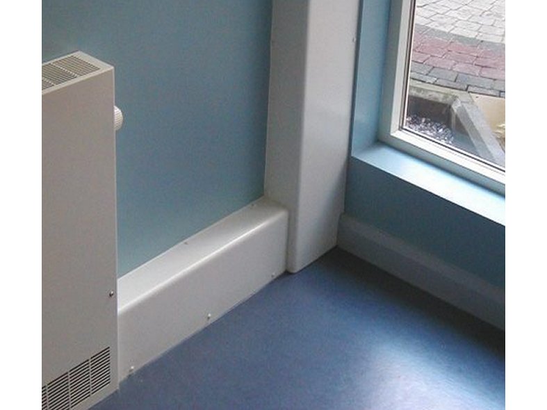 Dans les endroits où séjournent un grand nombre de personnes (par exemple, dans les bâtiments publics), ainsi que dans les couloirs et les salles de bains, les structures en panneaux de plastique durables semblent appropriées, là où les systèmes de chauffage sont cachés.