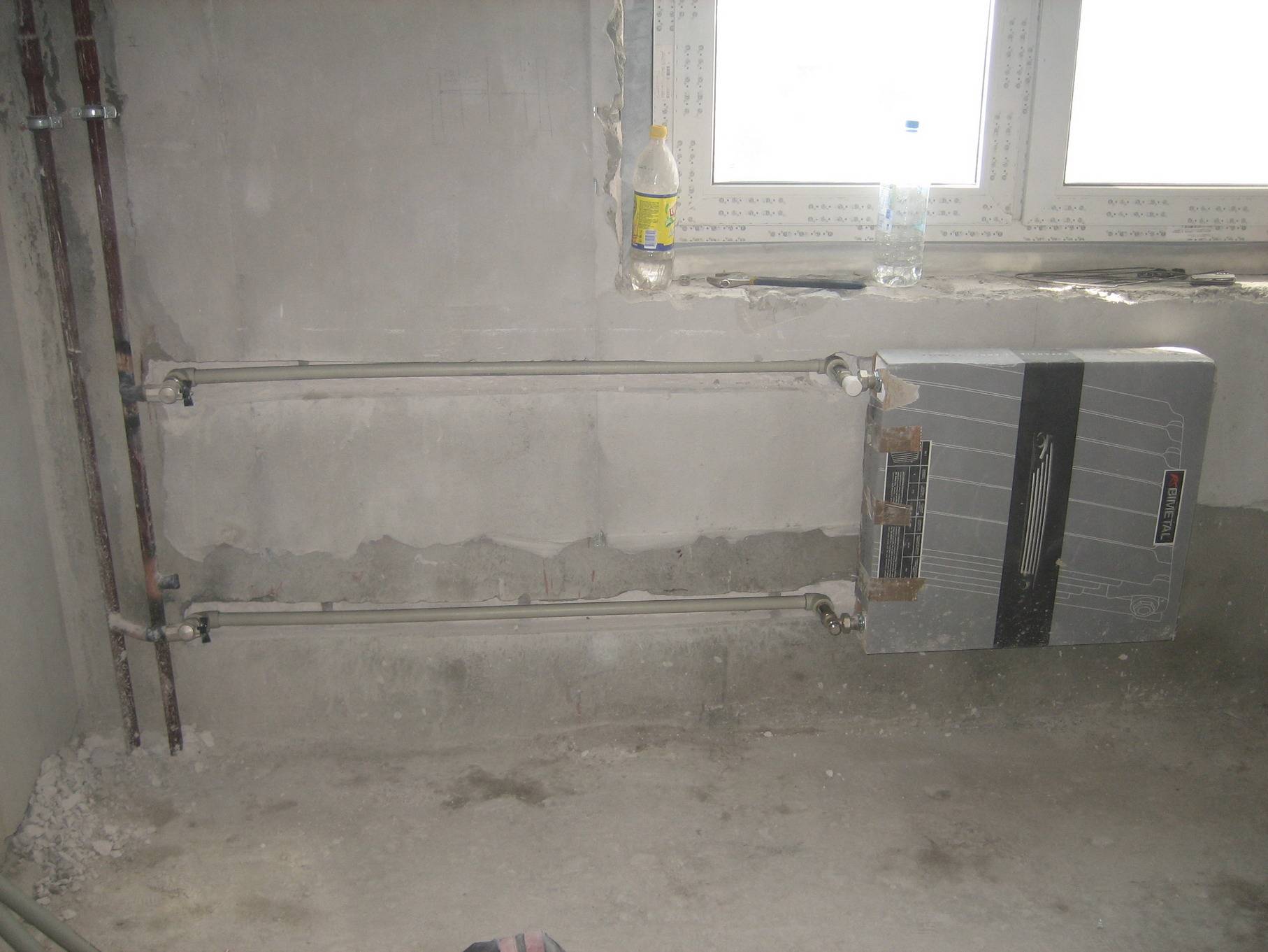 Aux endroits (au sol et sur les murs) où se trouvent les communications de chauffage, des barres de support supplémentaires sont installées, auxquelles des supports de cadre seront fixés, situés le long et à travers.