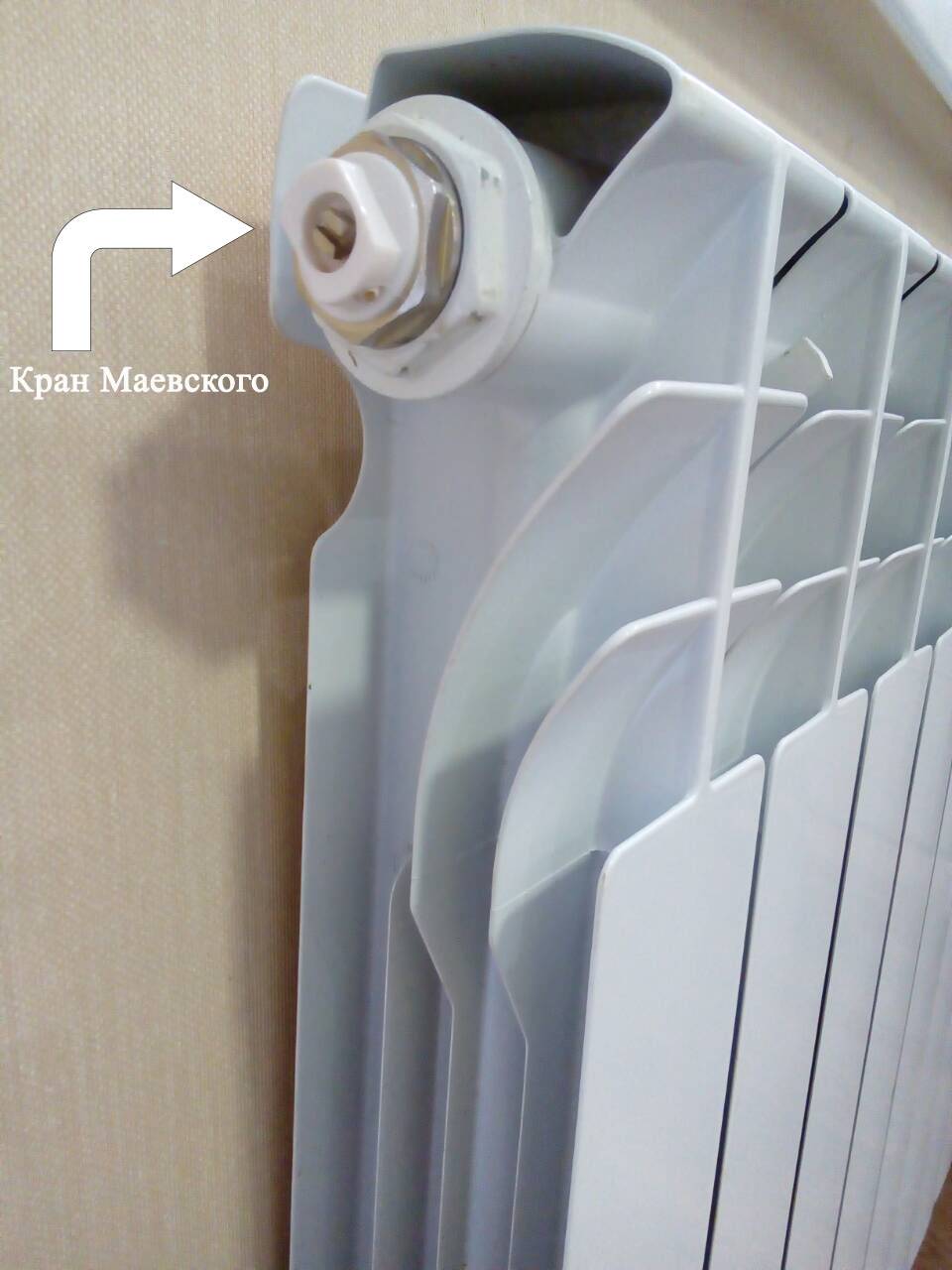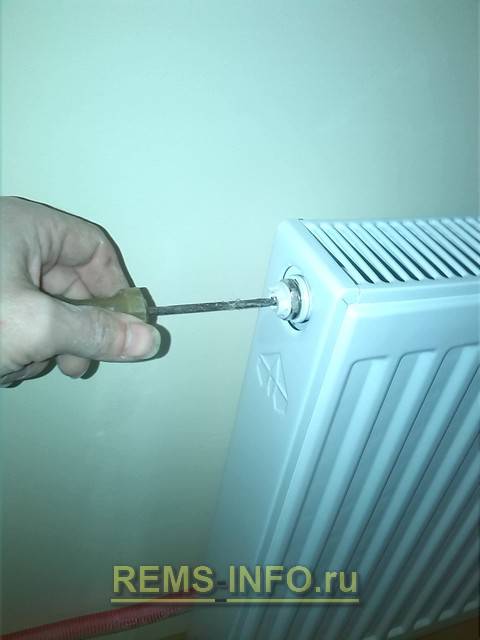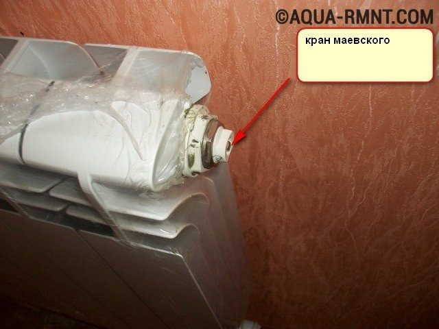 Si possible, pour faciliter l'aération répétée, nous remplaçons le bouchon aveugle par le même, uniquement avec la grue Mayevsky installée. Pour ce faire, vous allez devoir isoler la batterie du chauffage, vidanger l'eau de celle-ci.