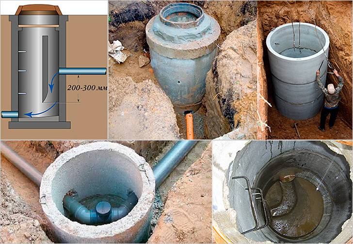 En conséquence, il est économiquement avantageux, car le coût d'utilisation des égouts est réduit ; - Les anneaux (voir Anneaux pour un puits : types et caractéristiques fonctionnelles) de la section de filtre sont généralement également en béton armé. Cependant, la différence avec l'accumulatif est le plus petit diamètre des anneaux et l'absence de fond.