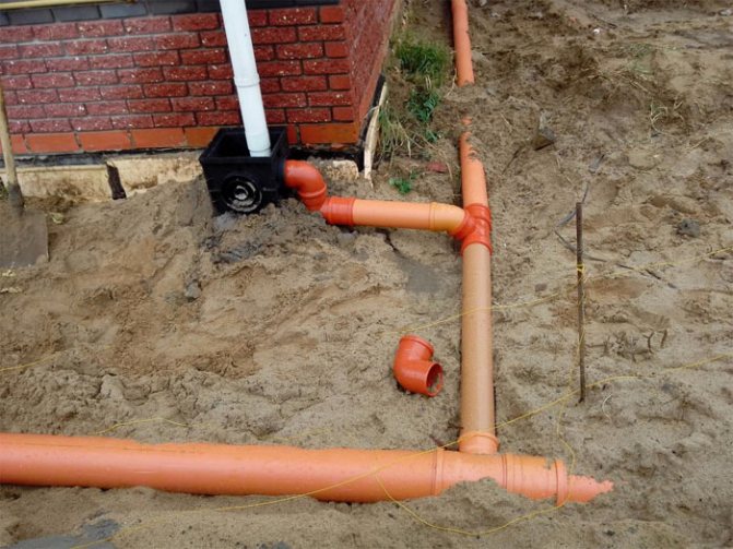 Vous devez d'abord marquer la surface et creuser des tranchées pour les sorties et les tuyaux (en tenant compte de la pente), ainsi que des trous pour les entrées d'eaux pluviales. Les tranchées pour les exutoires sont bétonnées, un coussin de sable de 10 cm d'épaisseur est disposé au fond des tranchées pour les canalisations.Les collecteurs d'eau doivent être équipés d'entonnoirs fermés par des filets. Tous les éléments du système de tempête sont connectés.