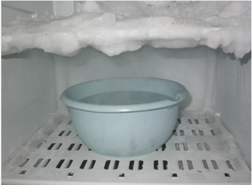 Cette méthode peut être combinée avec des casseroles contenant de l'eau bouillante. Ensuite, les conteneurs sont placés sur les étagères inférieures. La technologie réussit non seulement pour les nouveaux, mais aussi pour les anciens réfrigérateurs, où le givre se forme rapidement. Lors du dégivrage du congélateur, n'oubliez pas le plateau et un chiffon.