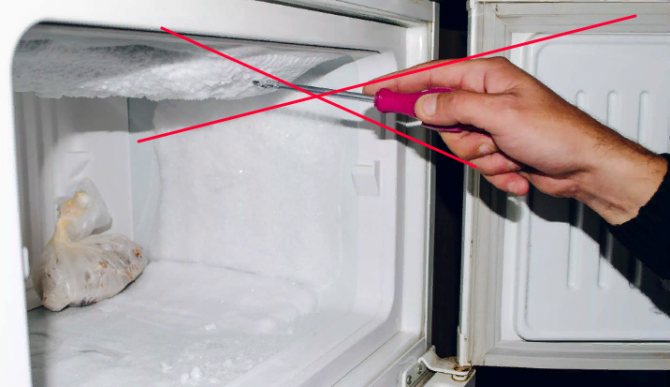 les tentatives d'élimination des couches de glace avec des objets pointus en métal et en plastique accéléreront la procédure, mais en même temps, vous risquez d'endommager le réfrigérateur et, dans certaines situations, même de le désactiver;
